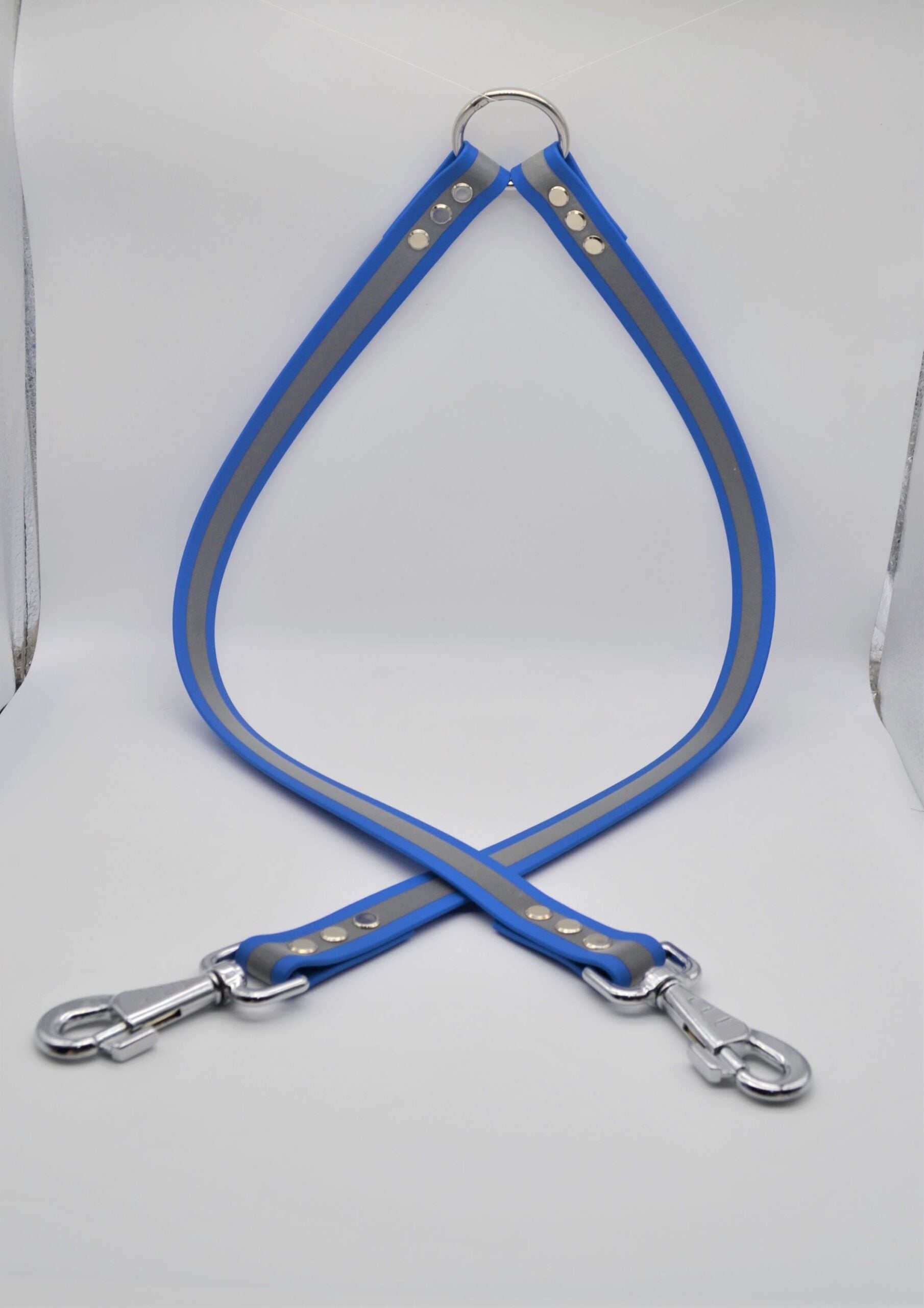 25mm Reflective Blue Waterproof Webbing Double Split Lead Coupler