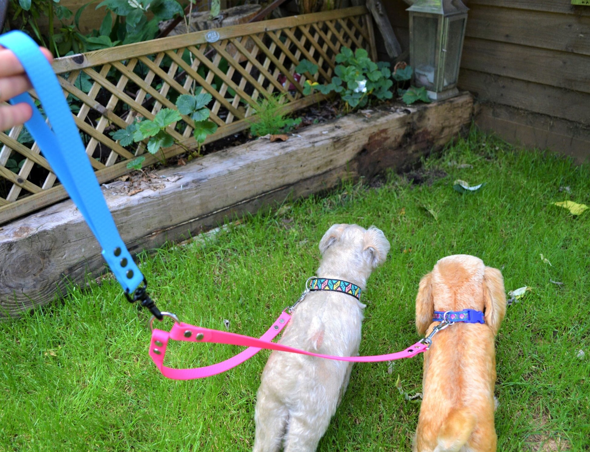 Choose you length 20-30″ or message us if you require a custom length- we can even make the leads different lengths if you have different sized dogs!