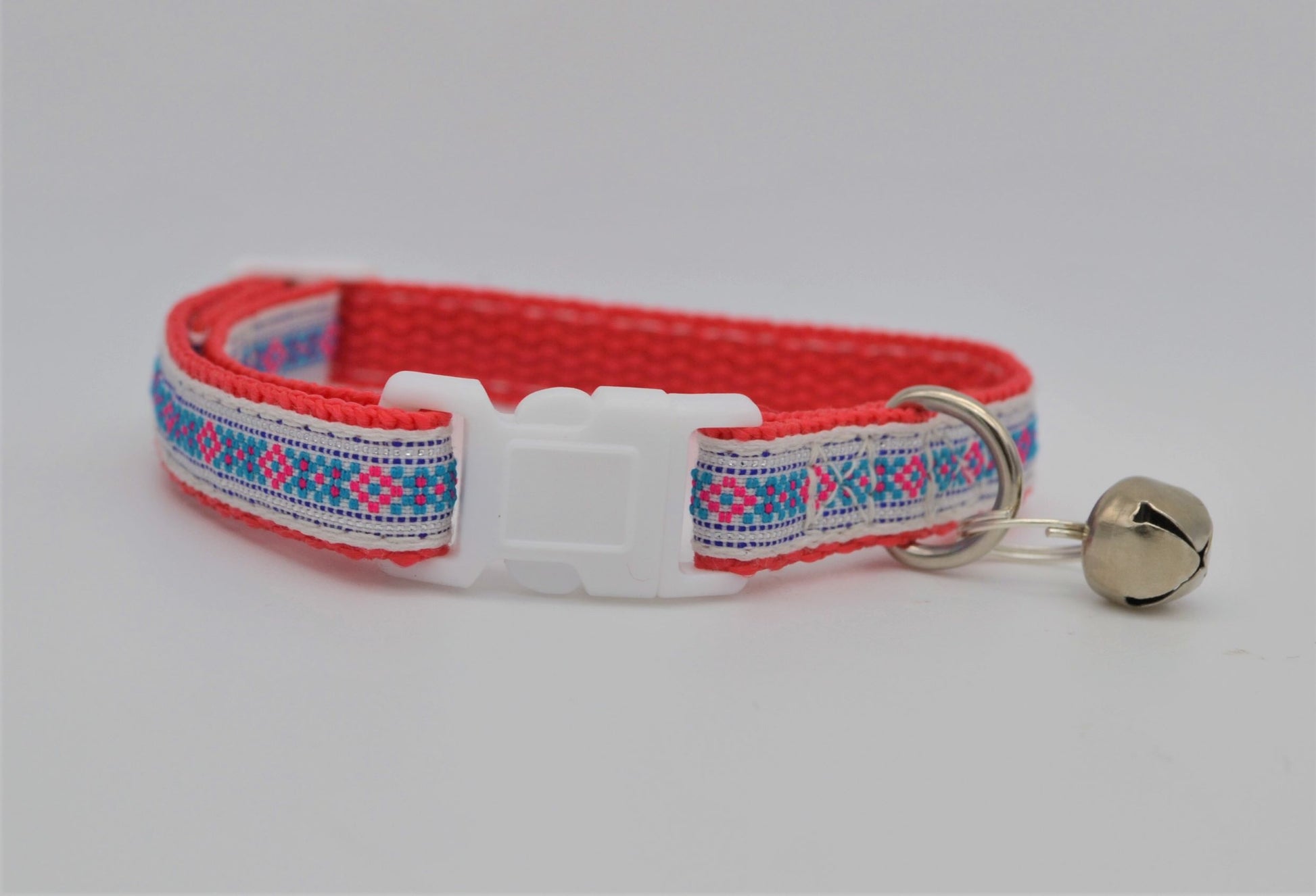 Red/White Tribal Pattern Cat Collar (Safety Buckle)